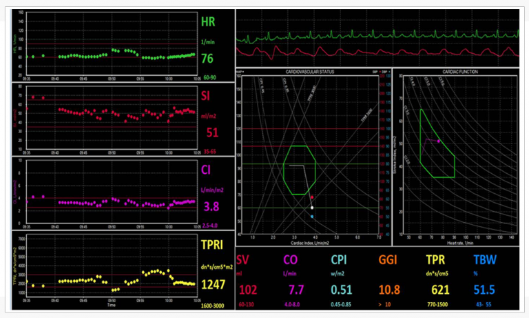 NICaS (Non Invasive Cardiac System) can monitor these parameters by means of just 2 sensors placed on patient both wrists. This noninvasive, easy to use and low cost technology can be a useful solution to provide anesthesiologist a better understanding of patients hemodynamics.
