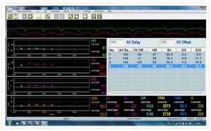 By obtaining a continuous Cardiac Output reading by using the NICaS, AV and VV delays can be set so that Cardiac Output can be maximized. See Figure 1 for NICaS Comparative Screen during CRT optimization.